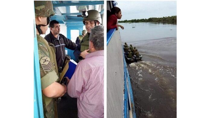 Personas temerosas de que se tomen medidas contra ellos por denunciar estos hechos hicieron públicas imágenes de cómo los milicos rapais abordan las embarcaciones con bandera paraguaya como si nada, en algunas oportunidades, utilizando el amedrentamiento de las armas.