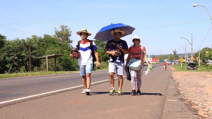Así como esta pareja, varios más llevaban a cuesta, en carrito y ka’írõ a sus bebés y niños, cumpliendo la promesa que hicieron por ellos. La mayoría dijo que la Virgencita Azul escuchó sus suplicas por la salud de sus pequeños.