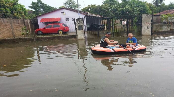 Una vez más la lluvia hizo de la suyas en la ciudad de Pilar, capital del departamento de Ñeembucú, dejando muchas casas inundadas y obligando a que las familias afectadas se desplazaran a los refugios cercanos, en algunos casos incluso con canoas por la gran cantidad de agua que se juntó en las diferentes calles de la ciudad.