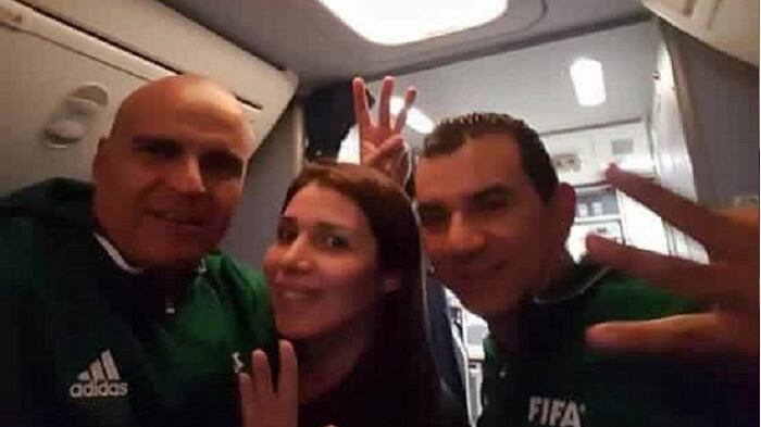 En la imagen que generó todo tipo de reacciones no solo Chacón mostró los tres dedos, uno de sus asistentes (José Luis Camargo) también lo hizo. En medio de los dos se le ve a una señorita sonriendo. Es difícil determinar si todos son hinchas del Decano, más aún porque los jueces son mexicanos.