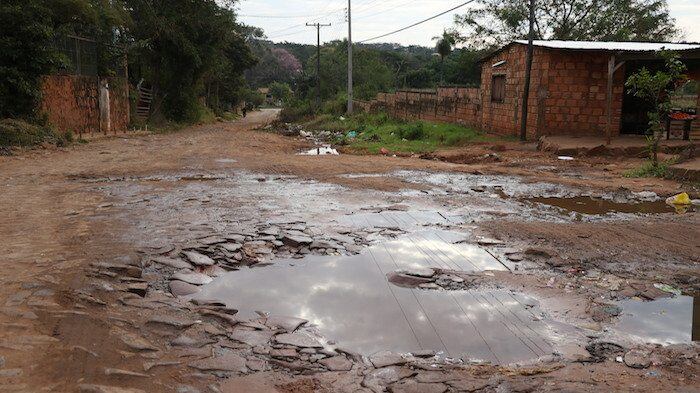 El tema es la casi intransitable calle Padres Unidos, límite entre San Lorenzo y Ñemby, a unos 50 metros de la avenida Pratts Gill, que es un feroz akãrasy tanto para vecinos como para los que intentan circular por ahí. “Los días de lluvia los buses desvían esta zona porque saben que es imposible pasar”, nos comentó Leonida Caballero (60), quien hace 35 años vive en la zona. “Esto cambió hace cuestión de 10 años, las calles sí eran reparadas y cuidadas. Hoy en día está prácticamente abandonado todo”.
