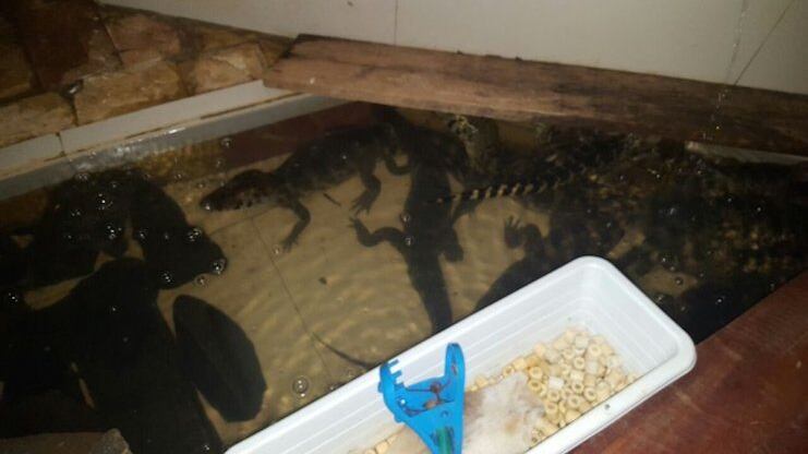 CIUDAD DEL ESTE. Investigadores buscaban a los responsables de un millonario asalto, pero en lugar de esto, se toparon con13 yacarés que estaban guardados en una tipo pileta sin ninguna autorización legal por lo que quedaron “presos”.