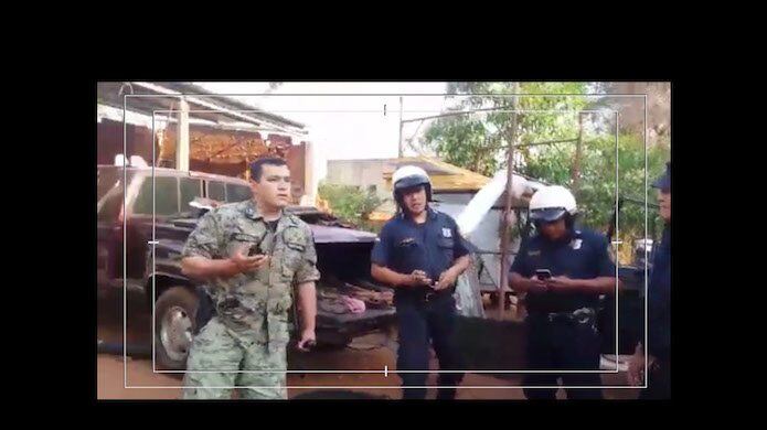 Según la denuncia, los efectivos agredieron a varias personas, entre ellas a la esposa del denunciante, Sandra Morel, a quien propinaron golpes con cachiporra en el cuello y rociaron con gas pimienta, también al hermano de esta, Alberto Morel.