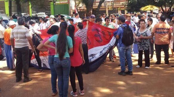 “Libertad a los presos por luchar”, coreaban los manifestantes frente a la prisión, adonde llegaron tras marchar desde el centro de la ciudad, como medida de fuerza para que las autoridades liberen al docente universitario de la Facultad de Filosofía del Este y miembro del Partido Comunista Paraguayo, y a su esposa, Dora Viviana Meza Martínez (25), hermana de Magna Meza prófuga de la Justicia e integrante del grupo guerrillero.