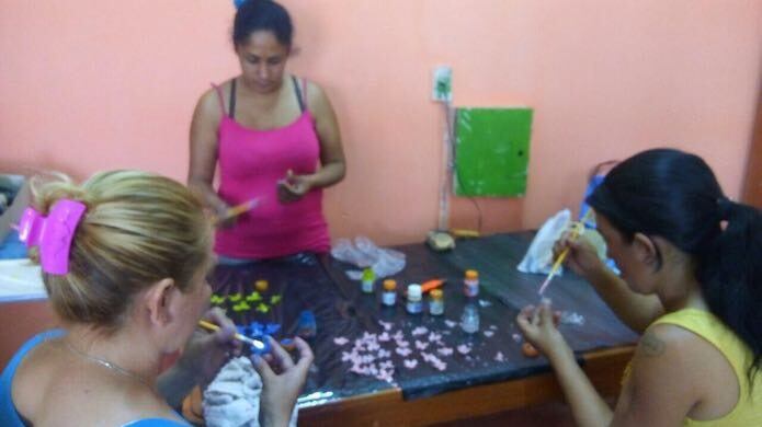 “Adriana Ortiz fue quien nos mostró la técnica y empezamos a trabajar con 7 chicas de la zona de Cateura, ya que la idea del Centro de Atención Familiar es tener una salida laboral dentro de la comunidad”, dijo Soraya Bello, trabajadora social de la Asociación Mil Solidarios de la obra del pa’i Oliva.