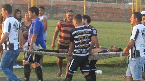 Además de regalar un vergonzoso espectáculo, el “todos contra todos” terminó con varios protagonistas machucados. El que llevó la peor parte fue Juan González del “24”, quien ligó una patada voladora al estilo Jackie Chan, que le afectó notoriamente la costilla. El pelotero fue derivado al hospital más cercano (ver fotografía) y tuvo que salir en camilla.