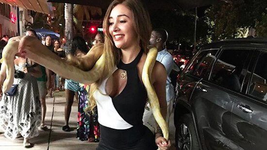 La exuberante Vero Almirón se encuentra por Miami-Estados Unidos, realizando algunos trabajos y en uno de sus recorridos se topó con una serpiente a la cual se atrevió a levantar con las manos. “Me encontré a una amiga” comentó en Instagram.