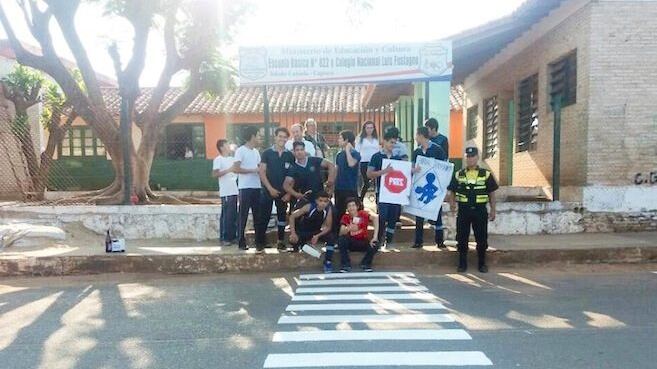 Asimismo, en conjunto con alumnos de la mencionada casa de estudios han realizado una pintata de cebra peatonal frente a la mencionada institución educativa, a fin de precautelar la seguridad vial de los alumnos de dicha casa de estudios.