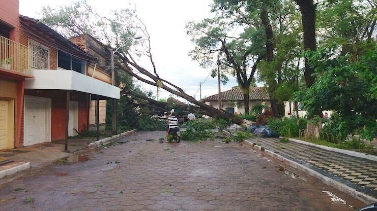 La tormenta llegó sobre la ciudad alrededor de las 17 horas aproximadamente de este jueves y duró apenas algunos minutos que fueron suficientes para dejar una serie de destrozos a su paso.
