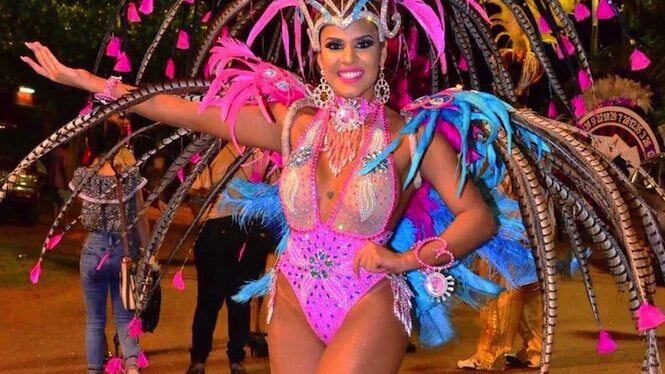 La bombonaza es una de las más bellas del carnaval gua’i, junto a su sucesora, la reina de los corsos Maccarena Ávalos.