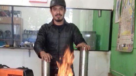 El sorprendente brasero es producido totalmente con acero inoxidable, pero lo que más llama la atención es que la materia prima surge de hierros viejos, inclusive las válvulas que sirven para regular el calor producido por la máquina casera. Su funcionamiento es supereconómico porque solo bastan unas leñas para producir el fuego; sin embargo, con la estratégica colocación de los tubos, de forma inclinada, hace generar una impresionante presión gracias a las válvulas reguladoras.