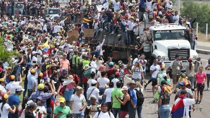 Mientras tanto en la frontera con Brasil, el primer camión con ayuda humanitaria ya ingresó a territorio venezolano.
