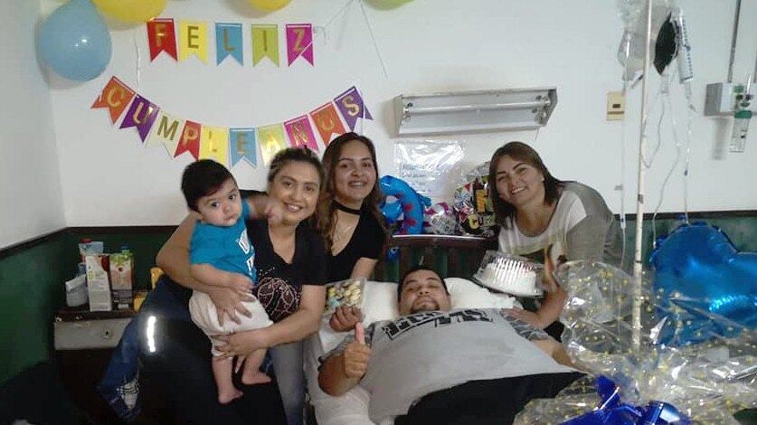 Su esposa y familiares le llevaron tortas y globos hasta su sala de internación y se esperaba que ayer a la tardecita le den el alta al cumbiero.