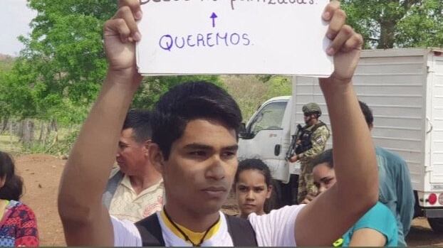El secundario exigía la desmilitarización de la zona norte del país, mayores rubros para la salud, mayor gasto para educación y control efectivo sobre las autoridades. Pero repentinamente, una mujer perteneciente al equipo de seguridad del Presidente se acercó, estiró y rompió los carteles del joven.