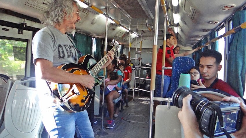 –Sí. El video lo hicimos en una línea, por lo tengo que agradecer al sindicato de la línea 21 que nos facilitó esto. Grabamos en una sola jornada y subimos con un chofer que le tocó hacer el trayecto de Sajonia a Fernando de la Mora, y viceversa. Fuimos grabando con pasajeros reales que subieron y les pedimos permiso y estaban encantados en participar de la grabación.