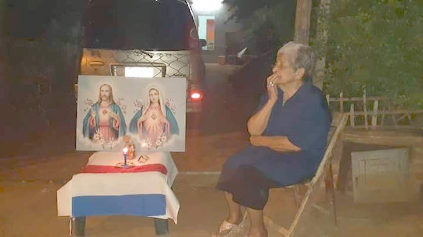 Ahí va ña Emi. Camina hacia su vereda aferrada a la Virgencita. La doña implora desde un costado de su portón y luego le agradece a la imagen religiosa por un día más de vida. La misma escena se repite al mismo tiempo con su vecina y en cada casa del barrio Pitiantuta, de Fernando de la Mora.
