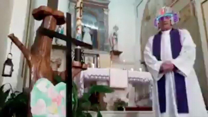 En la grabación se puede ver al pa’i dirigir su misa por varios minutos sin darse cuenta que los filtros de la aplicación se activaron y lo hacen lucir kachiäi.