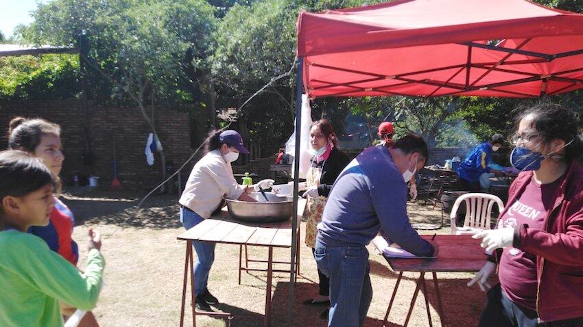 Es la única manera de sobrellevar esta dura prueba de vida que estamos viviendo, no solo en el país sino en el mundo entero voi. La comida fue preparada en la plaza central de Curuguaty, en donde hasta el gobernador, César “Tigre” Ramírez, se remangó la camisa ha oñecociná avei. Los ingredientes fueron donados íntegramente para la ayuda a los prójimos.