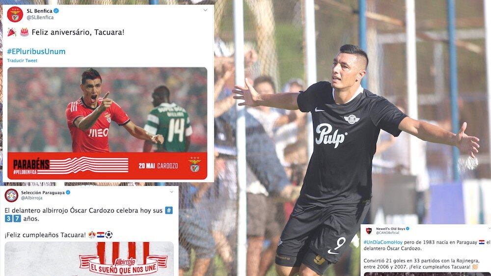 Que Óscar Cardozo fue un verdadero ídolo en el Benfica no es novedad. Y que todavía lo sigan recordando como un crack, tampoco. De ahí que ayer, en el cumpleaños número 37 del ahora atacante de Libertad, las felicitaciones no se hicieron esperar.