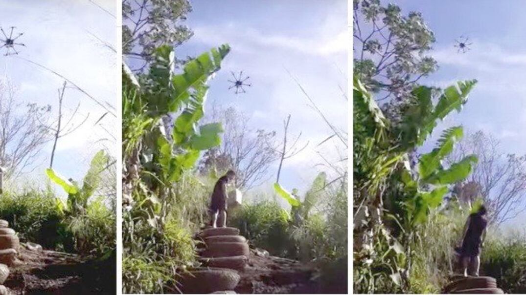 Es probable que los drones aguanten la carga de cierto volumen y la distancia para el traslado de la encomienda clandé. En el video se ve que lleva una caja de tamaño considerable.