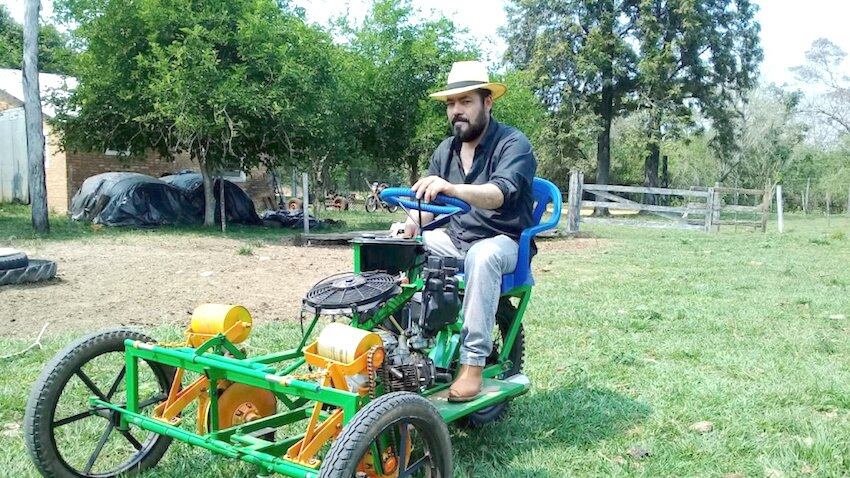 Don Villalba es de la compañía Ríos Ruguá, de Itacurubí del Rosario, San Pedro, y anteriormente ya había fabricado un vehículo para su movilización propia. Lo conocen como el “hombre de hierro”.