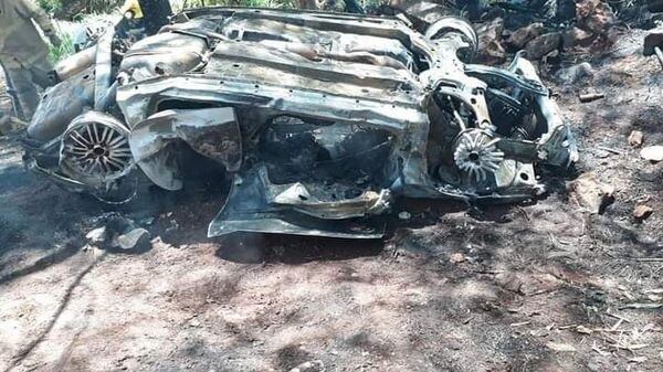 La víctima omano calcinada anga porque se quedó atrapada entre los hierros retorcidos de su vehículo, que estalló en llamas debido al tremendo impacto por el yvyramáta. Los agentes de la Policía Nacional y los bomberos fueron al lugar para tomar intervención en esta terrible tragedia.