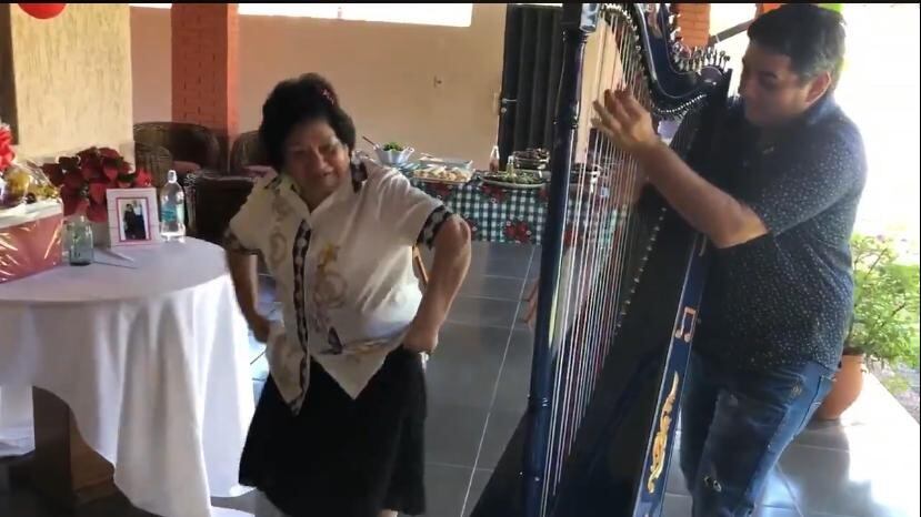 Nelson "Pipino" Cuevas y sus hermanos le organizaron un festejo purete con música en vivo, para que ña Tora pueda pasar más que bien en su día.
