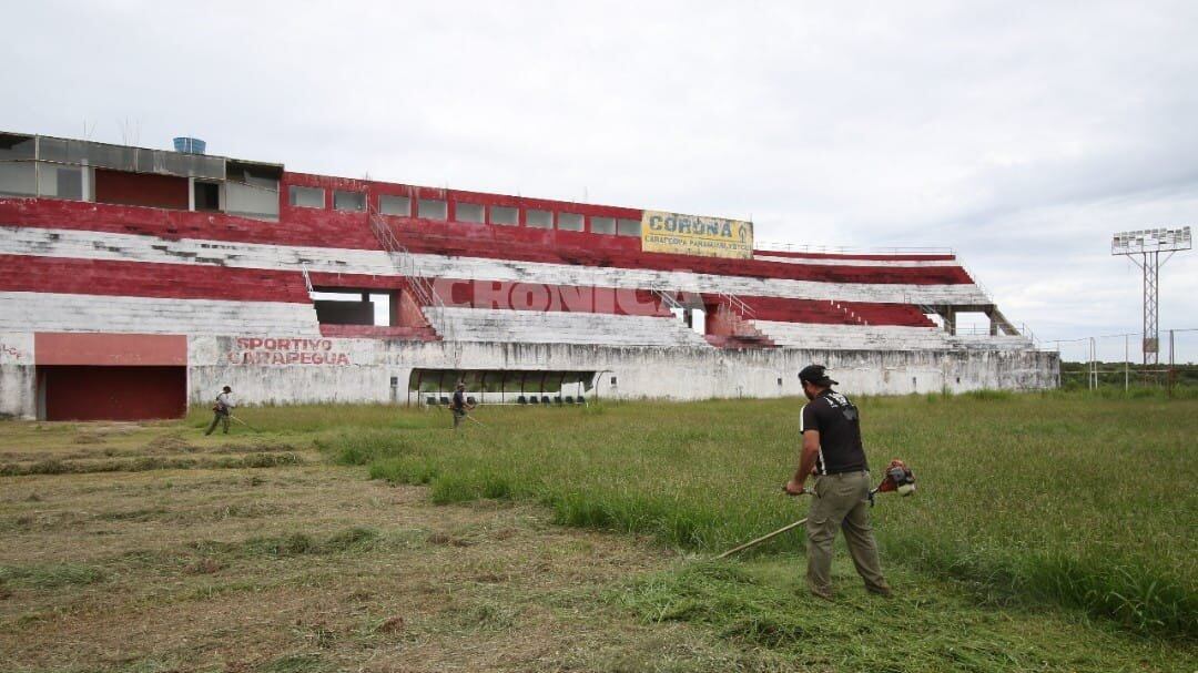 Algo histórico para el “Potro”, como es apodado el cuadro carapegüeño. Hoy, el estadio está muy maltratado, pero hay grandes proyectos y la limpieza ya arrancó a full en las instalaciones del Municipal que pedía a gritos que alguien venga y le brinde cariñitos. Crónica charló con el presidente de la Liga Carapegüeña (se llama así ahora porque permanece en el Nacional “B” de la UFI), Herni Barrios, quien arrancó diciendo que “gracias al apoyo de la Municipalidad estamos limpiando nuevamente el estadio. Había mayores necesidades que cubrir por el tema de la pandemia y por eso se lo dejó muy de lado al estadio. Tenemos muy lindos proyectos con la Secretaría Nacional de Deportes y queremos devolverle a Carapeguá la chance de estar en el ruido grande. Queremos resurgir y volver a recibir a grandes equipos en nuestro recinto deportivo”.