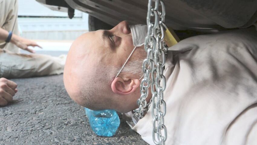 En el tercer acto: “Payo” se apodera de la llave de la camioneta del Ministerio del Interior y se encadena debajo del rodado y exige que el ministro Arnaldo Giuzzio se presente para retirar el vehículo. ¿Cómo se llama la obra? Llamala como quieras. Lo cierto es que “Payo” fue protagonista nuevamente de un show con bolonqui incluido.