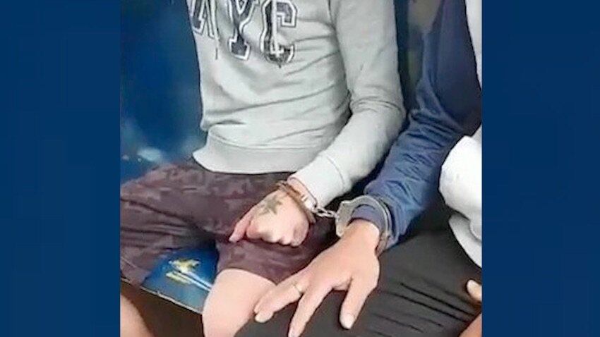 En el video se puede ver cómo el propio agente policial saca su celu y graba unos segundos el traslado de los malevos quienes estaban esposados uno al lado del otro y “disfrutando” del viaje.