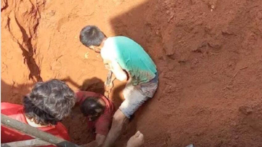 Un grupo, integrante de una misma familia, realizaba una excavación en el fondo de una casa, supuestamente para lo que sería un pozo ciego. Pero ante el aparente desconocimiento sobre el trabajo, la tierra les hizo una mala pasada que no olvidarán jamás.