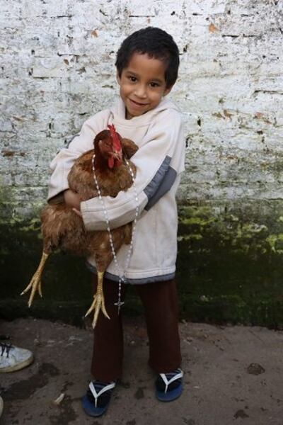 “Todos los días le da de comer porque él quiere darle al Papa para su gallina cuando viene a la Argentina, no sé cómo vamos a hacer, pero él demasiado quiere. Mi hijo es un niño bendecido y reza todos los días, él solito”, contó Ana María Brigada, mamá del niño.