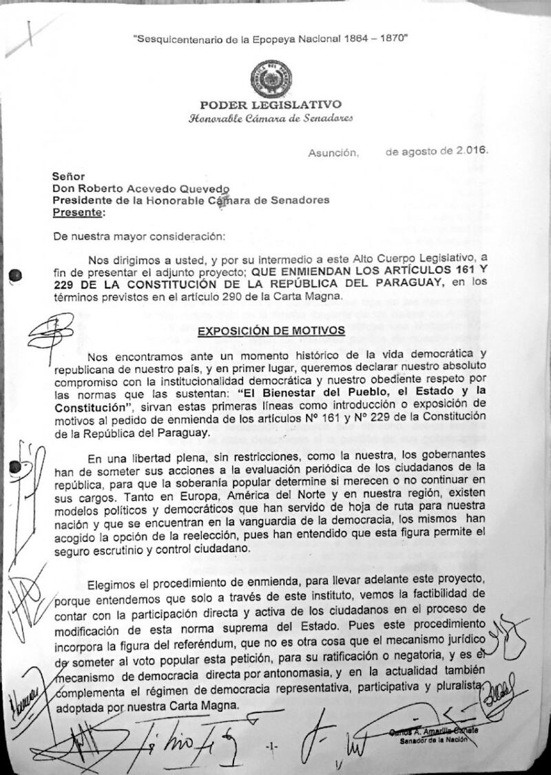 El 25 de agosto de este año, doce senadores firmaron el proyecto de enmienda que fue tratado en una sesión extraordinaria “flash” que duró menos que la primera cerveza, con la sola intención de rechazarlo, pese a la exposición de motivos en que el pueblo era el que se “merecía” esta oportunidad y así evitar que en un año se toque el tema.