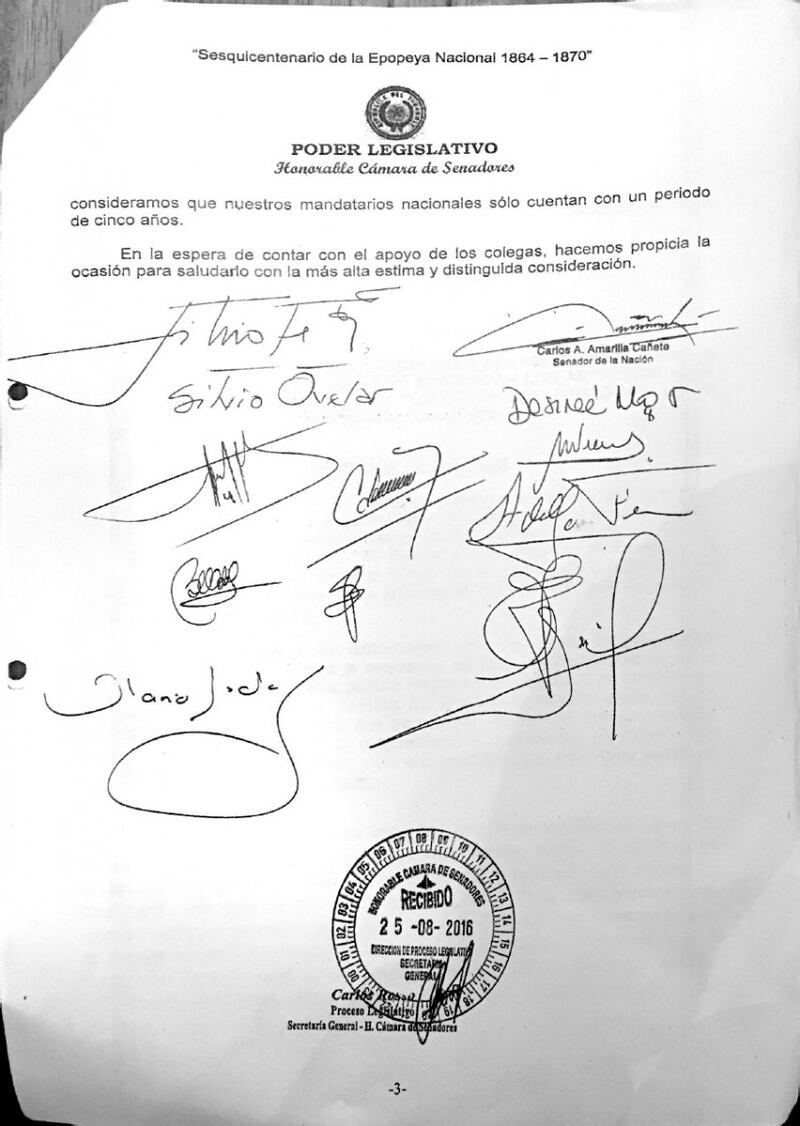Los responsables fueron los colorados disidentes Silvio Ovelar, Arnoldo Wiens, Mario Abdo Benítez, Óscar Salomón y Blanca Ovelar. Los liberales Carlos Amarilla y Luis Alberto Wagner. La bancada del PDP: Desirée Masi, Arnaldo Giuzzio, Pedro Santa Cruz, y la de Avanza País: Adolfo Ferreiro y Miguel A. López Perito.