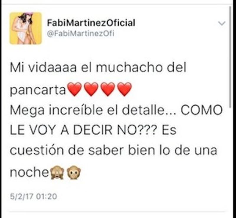 “Yo pensé que era una broma. Se viralizó en los grupos de WhatsApp. A mí me enviaron esa foto no sé cuántas veces. Yo publiqué en mi Twitter sobre eso, pero el muchacho tiene que aclarar lo de la noche”, nos dijo Fabi.