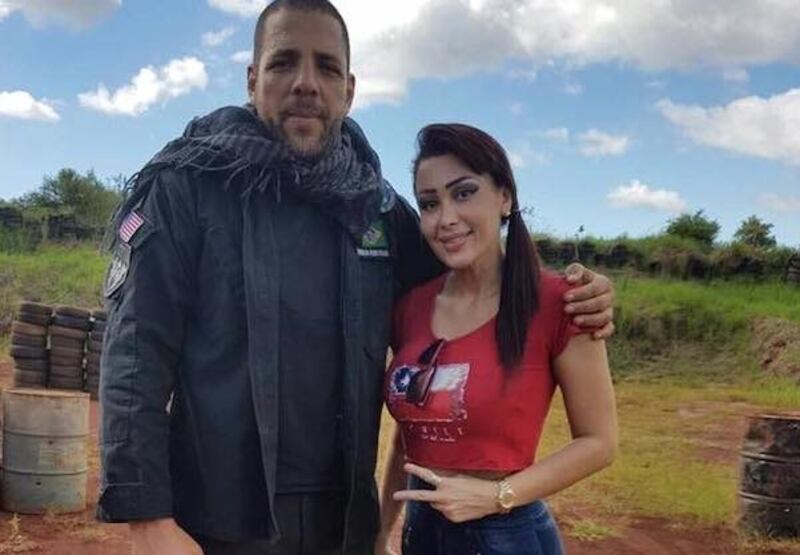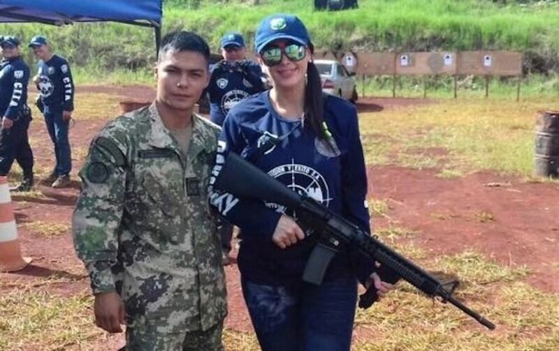 RAPAI. Paola posando para la foto con uno de los capos en guerra provenientes del Brasil.