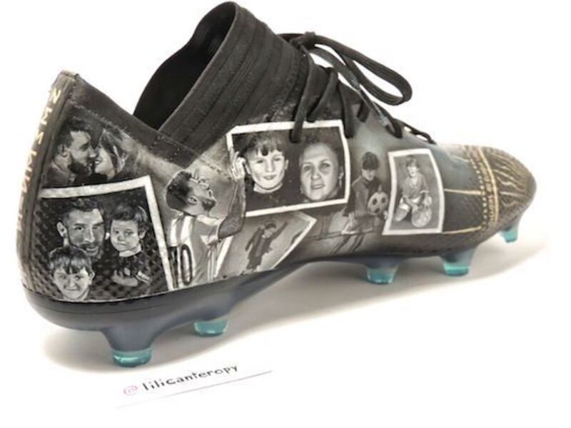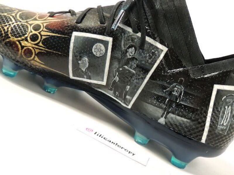 El mejor jugador del mundo exhibió el regalo que le hizo llegar nuestra compatriota y se trata de unos botines diseñados con las manos de Lili, que graficó los mejores momentos de Lionel en los calzados. Momentos de su infancia con sus familiares, el Barcelona, la sele argentina y también la esposa e hijos del 10. En síntesis, una verdadera obra de arte.