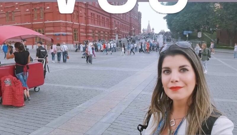 PLAZA ROJA. Nico Lithix y Soledad Franco en la Plaza Roja desde donde hacen la previa al Mundial.