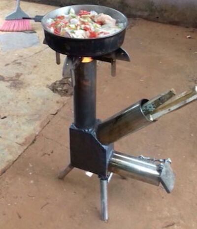 Hablamos de un cohete, pero no exactamente de esas que viajan al espacio, sino que de un brasero con similar aspecto al artefacto espacial deja jurujái a la muchachada por la manera en que funciona para cocinar, hervir, producir calor, ere eréa.