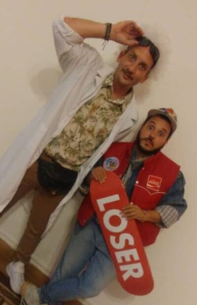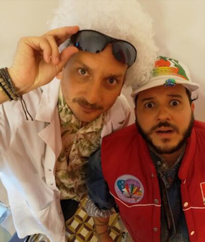 MONÓLOGOS. José y Jorge se vistieron así para promocionar sus monólogos.