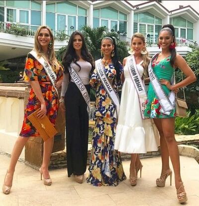 En la foto que la misma paraguaya subió a su cuenta de Instagram, se le ve a ella abrazada a las misses de Chile, Panamá y Perú.