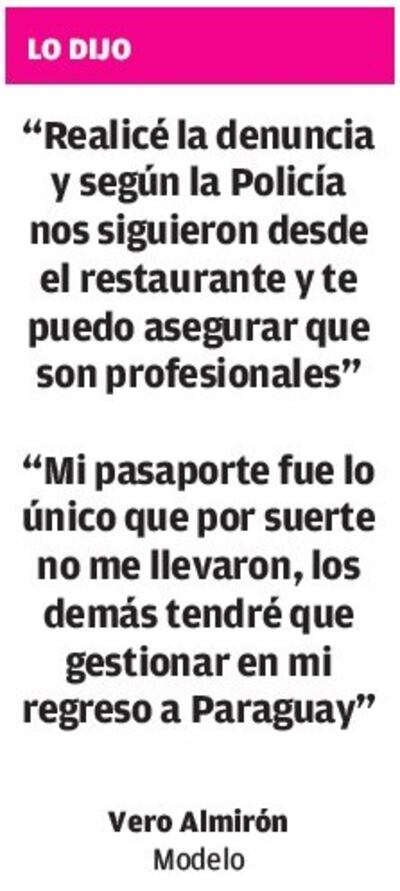- Realicé la denuncia y según la Policía nos siguieron desde el restaurante y te puedo asegurar que son profesionales, porque fue todo rapidísimo.