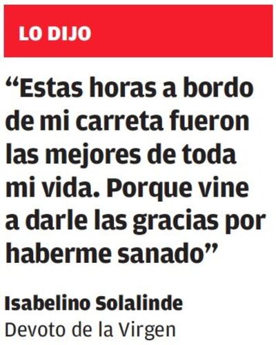 “Hace dos meses que preparé mi carreta y alimenté bien a los bueyes para llegar aquí junto a nuestra Madre María”, dijo.