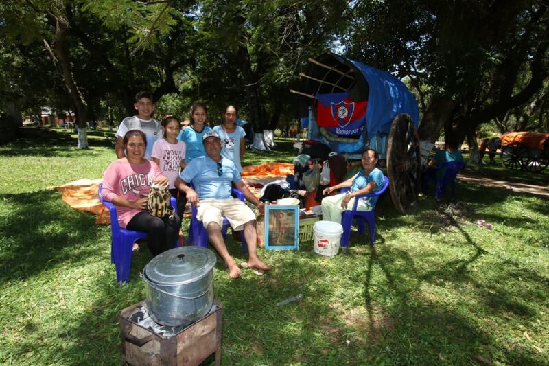 Todos acuden ya sea caminando, en colectivos y en el caso de don Isabelino Solalinde (50), a bordo de su carreta tirada por bueyes, una práctica que se volvió tradicional en varias familias de Yaguarón hace mucho tiempo.