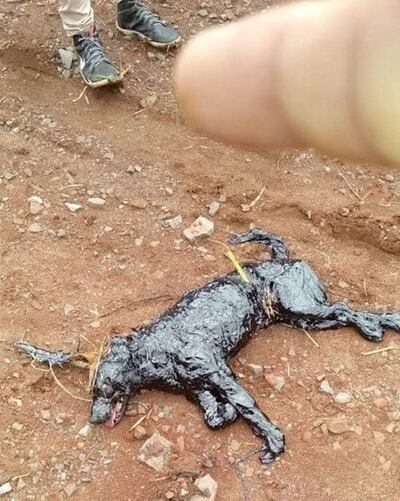 Los bomberos acudieron al sitio ha otopá a la pobre animal en muy mal estado de salud. Cansadísima de tanto luchar por liberarse y totalmente cubierta del alquitrán.