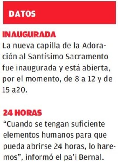 “Fue muy impactante para toda la feligresía. Nosotros como personas de mucha fe decimos que la Virgen nunca deja de acompañar a su hijo y lo tomamos como que ella ya le estaba esperando a Él en el lugar donde ahora posa para ser adorado”, agregó el pa’i.