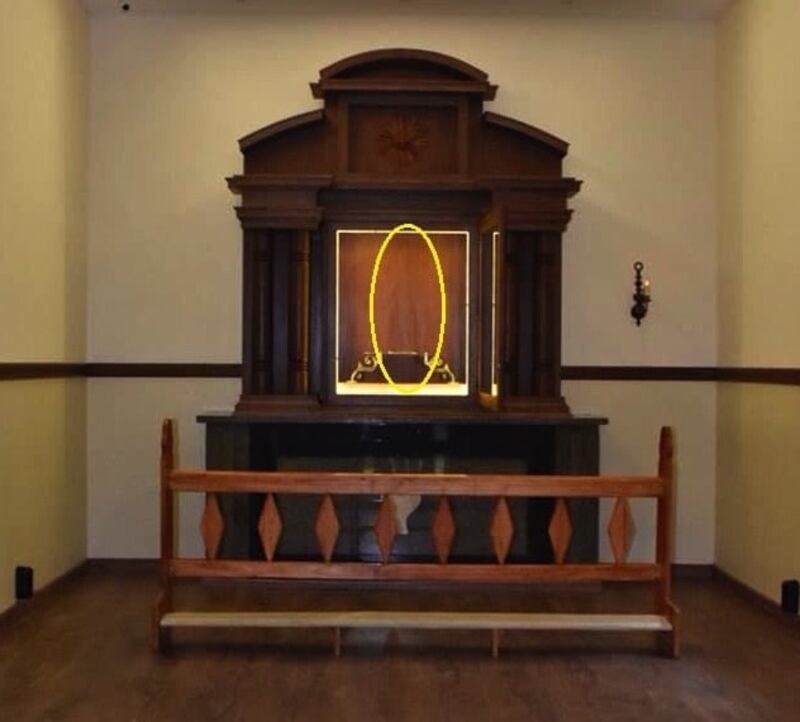Contaron que desde el tabernáculo donde colocarían la figura de Cristo se ve con claridad la silueta de una misteriosa imagen de la Virgen Inmaculada por la madera que está detrás de donde se coloca la hostia consagrada.