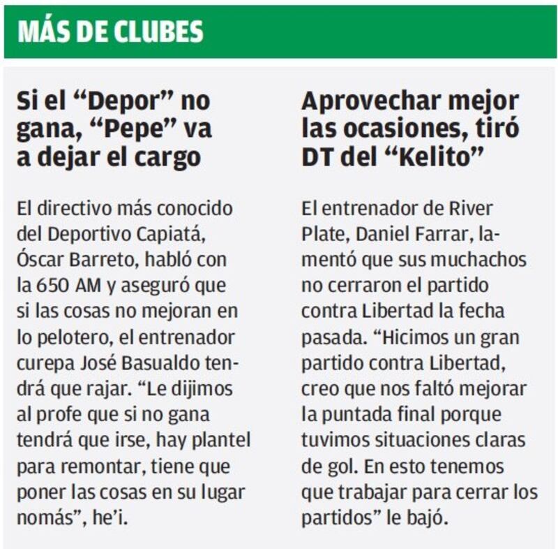 “Por lo que pudimos ver, son algo lentos en defensa, tenemos que aprovechar eso. Del medio para arriba sí tienen buen pie, vamos a tener que estar bien atentos” le bajó el DT pyahu Carlos Jara Saguier, quien tiene puño para estos partidos calientes.