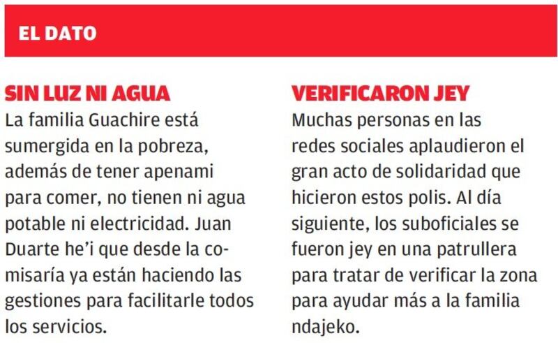 Este tipo de acciones de parte de la Policía Nacional demuestra que hay muchos oficiales que sí enaltecen el uniforme. La familia ovy’aiterei con la entrega de la gran siete que hicieron los suboficiales y agradecieron con lágrimas en los ojos.