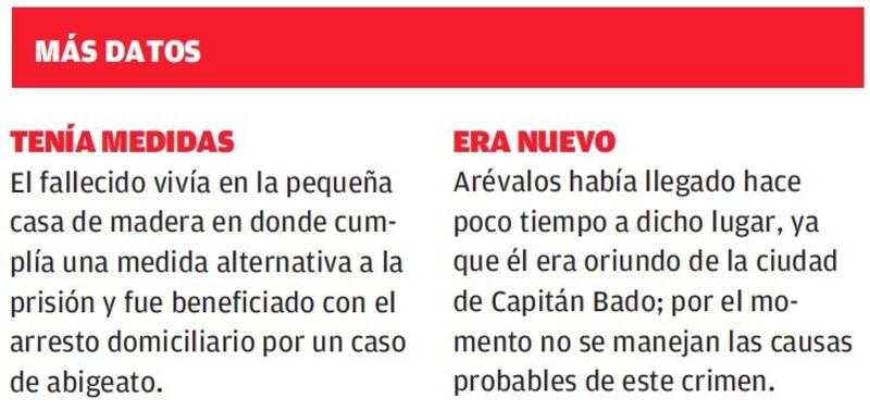 Le metieron 20 balazos en casi todo el cuerpo a Antonio Arévalos (37), oriundo de Capitán Bado, pero hace como un año y medio que vivía solo en una pequeña casita alquilada.